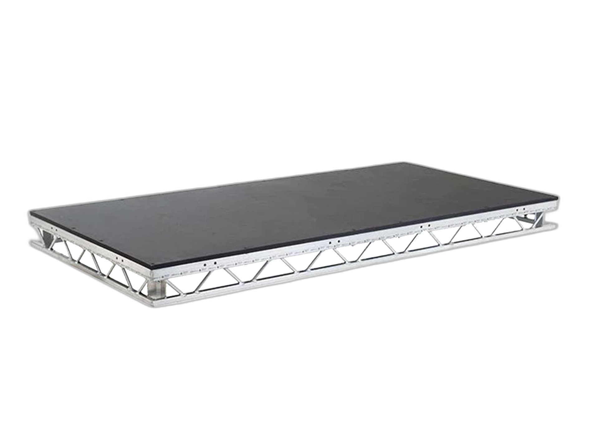 This robust decking is a workhorse with parts easily replaceable if the durable 19mm plywood top has reached the end of its life. The top can be easily replaced with 19mm plywood, aluminium or clear/acrylic tops adding more flexibility to your staging design.
